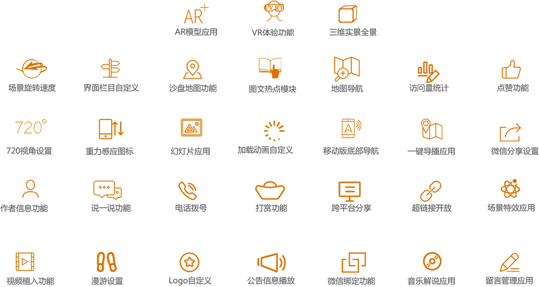 3D環物、商品展示、在線交易、廣告模塊等全景交互功能,50+插件可開展時下最新穎的營銷活動,打造企業獨立品牌絕佳優勢,實現合作伙伴廣告效益最大化。
